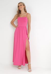 Born2be - Fuksjowa Sukienka Maxi na Ramiączkach z Rozcięciem na Dole i Kwadratowym Dekoltem Jacklyn. Typ kołnierza: dekolt kwadratowy. Kolor: różowy. Długość rękawa: na ramiączkach. Sezon: wiosna, lato. Długość: maxi #2