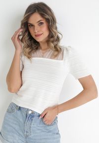 Biała Wiskozowa Bluzka z Krótkimi Rękawami i Dekoltem z Siatki Janetta. Wiskozowa bluzka Janetta wykonana w 100% z wiskozy. Wyróżnia się siateczkową wstawką przy dekolcie. Model z krótkimi rękawami. Idealnie sprawdzi się w codziennych i nieco bardziej eleganckich stylizacjach.