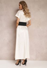 Beżowa Rozkloszowana Sukienka Maxi z Krótkim Rękawem i Elastycznym Paskiem Cruelli. Sukienka Cruelli z dodatkowym, szerokim paskiem z elastycznego materiału ze sprzączkami. Model o taliowanym fasonie z lekko rozkloszowanym dołem, bez podszewki. Klasyczne krótkie rękawy. Świetna do codziennych stylizacji.