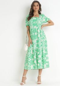 Zielona sukienka letnia Born2be kopertowa, w kwiaty 3100002394637