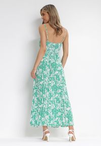Zielona Plisowana Sukienka Maxi z Kopertowym Dekoltem i Gumką w Pasie Ekeze. Sukienka Ekeze o długości maxi na cienkich ramiączkach z regulacją. Model z kopertowym, głębokim dekoltem. W pasie wszyta gumka, która po rozciągnięciu ma 85 cm (S/M). Dół rozkloszowany z plisowaniem. Nie posiada podszewki. Idealna na wiele okazji.
