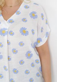 Born2be - Biało-Niebieska Bluzka w Rustykalnym Stylu w Kwiaty Aldora. Kolor: biały. Materiał: materiał. Długość rękawa: krótki rękaw. Długość: krótkie. Wzór: kwiaty #3