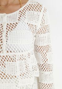 Born2be - Biała Szydełkowa Bluzka z Falbanką z Bawełny Hokna. Kolor: biały. Materiał: bawełna. Długość rękawa: długi rękaw. Długość: długie. Wzór: aplikacja #4