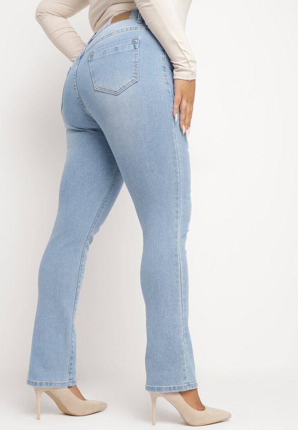 Born2be - Jasnoniebieskie Jeansy z Bawełną i Efektem Push Up o Dopasowanym Kroju Flortebia. Okazja: na co dzień. Kolor: niebieski. Styl: casual, elegancki