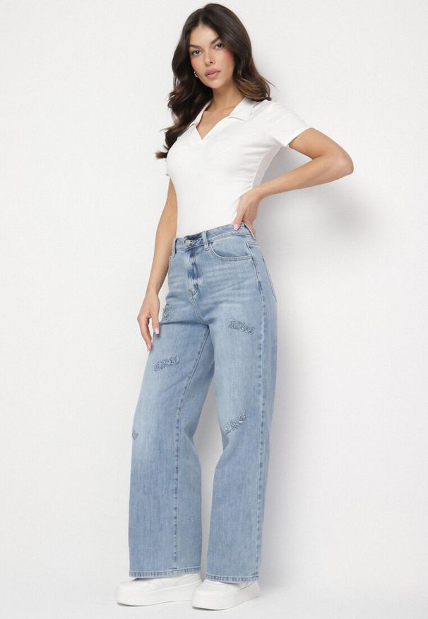 Born2be - Niebieskie Bawełniane Jeansy Typu Dzwony Tilassia. Okazja: na co dzień. Kolor: niebieski. Styl: casual