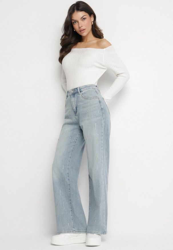 Born2be - Niebieskie Jeansy o Kroju Dzwonów z Regularnym Stanem Nelirelia. Okazja: na co dzień. Kolor: niebieski. Styl: casual