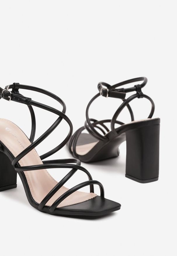 Born2be - Czarne Sandały na Szpilce z Paskiem w Cyrkonie Ophedora. Zapięcie: pasek. Kolor: czarny. Obcas: na szpilce