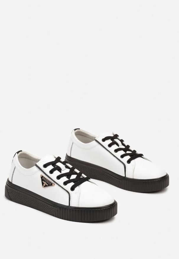Born2be - Białe Sneakersy Skórzane przed Kostkę na Grubej Podeszwie Miealla. Wysokość cholewki: przed kostkę. Kolor: biały. Materiał: skóra