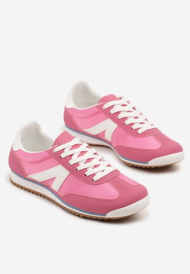 Renee - Fuksjowe Sneakersy na Grubej Podeszwie z Cyrkoniami Lisariana. Okazja: na co dzień. Kolor: różowy. Materiał: skóra, jeans