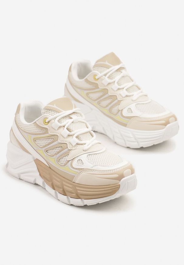 Renee - Srebrne Sneakersy z Metalicznymi Wstawkami i Brokatem na Grubej Podeszwie Anova. Kolor: biały. Materiał: skóra. Sezon: wiosna