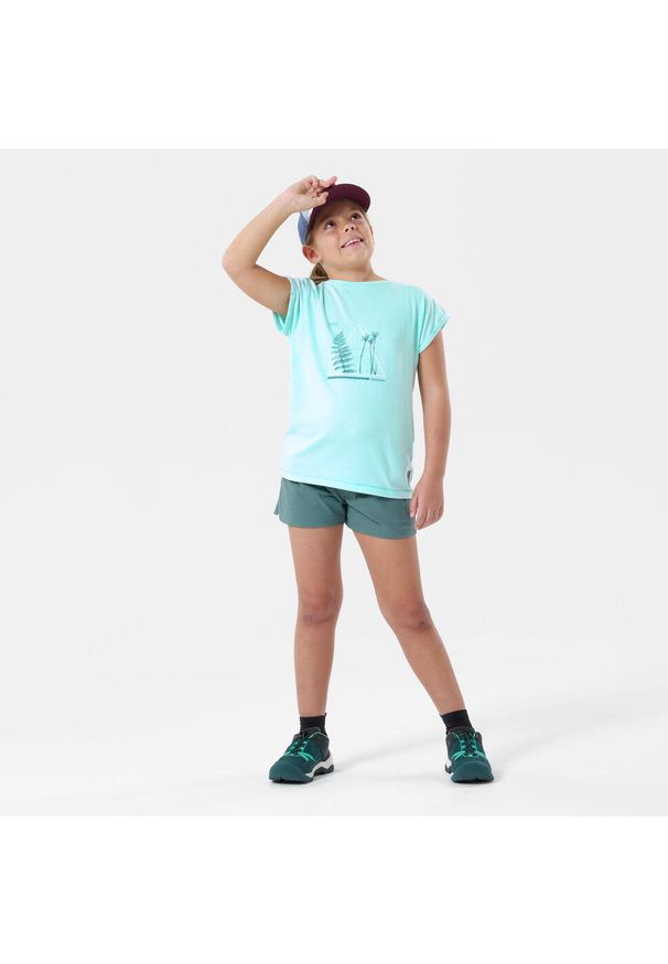 quechua - Spodenki turystyczne dla dzieci Quechua MH500. Kolor: zielony. Materiał: poliester, poliamid, materiał, elastan. Sezon: lato. Styl: sportowy. Sport: turystyka piesza