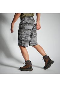SOLOGNAC - Bermudy outdoor Solognac 500 camo woodland. Kolor: szary. Materiał: poliester, bawełna, materiał. Sport: outdoor