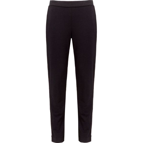 Spodnie Deha HARMONIC z komfortowej, wyjątkowo miękkiej tkaniny. W pasie gumka. Dwie kieszenie boczne. Wzdłuż nogawek ozdobne taśmy. Nogawki proste. Wygodny model, który sprawdzi się podczas wyjazdu do spa, jak i w czasie popołudniowego relaksu po pracy.