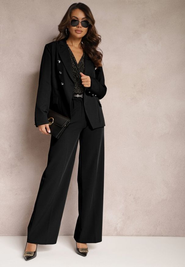 Renee - Brązowe Spodnie High Waist o Szerokim Fasonie z Paskiem i Złotym Metalicznym Detalem Eniarra. Okazja: do pracy. Stan: podwyższony. Kolor: brązowy. Materiał: jedwab. Styl: elegancki