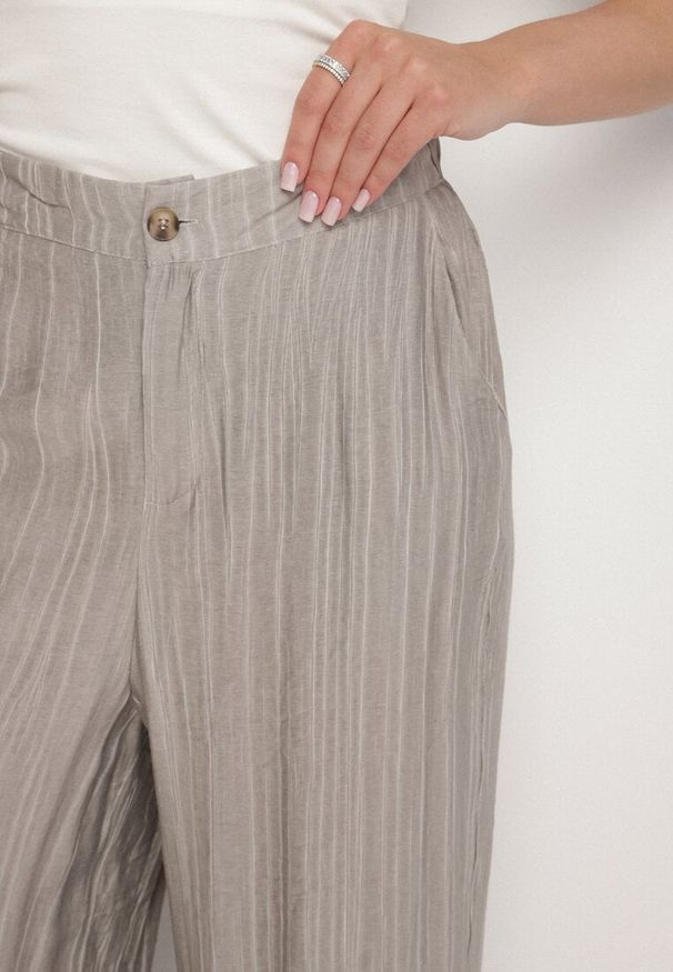 Renee - Szare Szerokie Spodnie z Zapięciem na Haczyk Brutris. Okazja: na co dzień. Stan: podwyższony. Kolor: szary. Styl: casual, elegancki