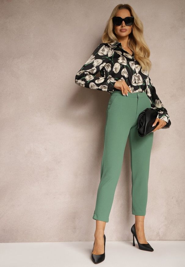 Renee - Ciemnozielone Spodnie z Bawełny High Waist Galili. Okazja: na co dzień. Stan: podwyższony. Kolor: zielony. Materiał: bawełna. Styl: klasyczny, casual, elegancki
