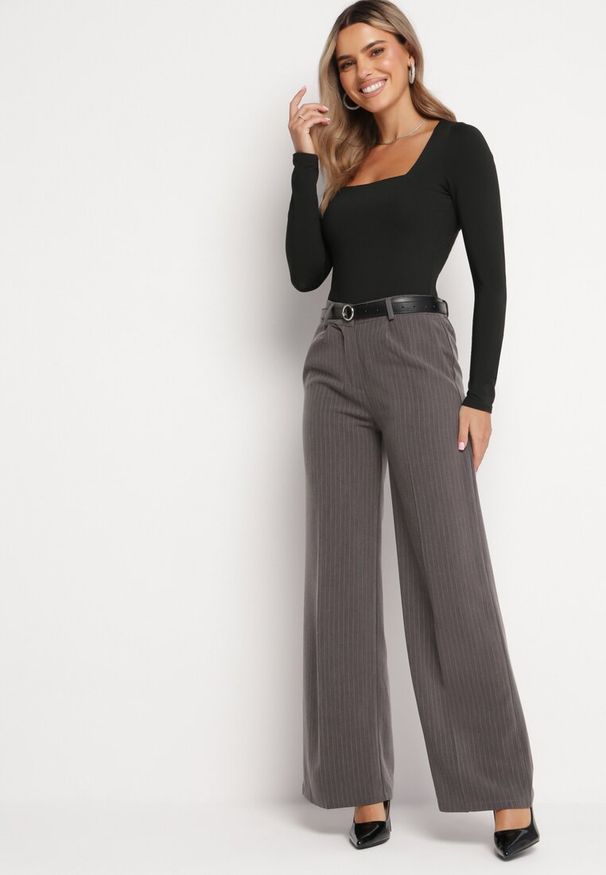 Born2be - Czarno-Beżowe Szerokie Spodnie Typu Szwedy z Plisowanego Materiału z Gumką i Paskiem w Talii Hurefia. Okazja: na co dzień. Kolor: czarny. Materiał: materiał. Styl: klasyczny, casual, elegancki