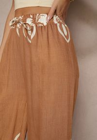Renee - Zielono-Różwe Spodnie z Wiskozy z Szerokimi Nogawkami i Gumką w Talii Cumiea. Kolor: zielony. Materiał: wiskoza. Wzór: aplikacja, nadruk. Sezon: wiosna, lato