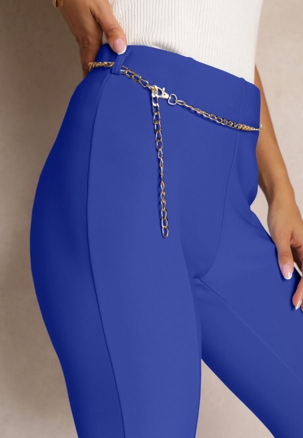 Renee - Fuksjowe Materiałowe Spodnie Dzwony z Ozdobnym Łańcuszkiem Amelana. Kolor: różowy. Materiał: materiał. Wzór: aplikacja