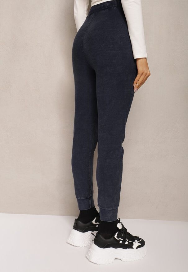 Renee - Granatowe Spodnie Dresowe z Gumką w Pasie Imith. Okazja: na co dzień, na spacer. Kolor: niebieski. Materiał: dresówka. Styl: casual, elegancki