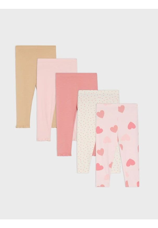 Sinsay - Prążkowane legginsy wykończone falbankami - różowy. Kolor: różowy. Materiał: prążkowany
