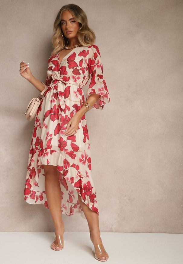 Renee - Niebieska Asymetryczna Sukienka z Bawełny z Kopertowym Dekoltem i Wiązanym Paskiem Nitilira. Okazja: na co dzień. Typ kołnierza: dekolt kopertowy. Kolor: niebieski. Materiał: bawełna. Typ sukienki: asymetryczne, kopertowe. Styl: casual, elegancki