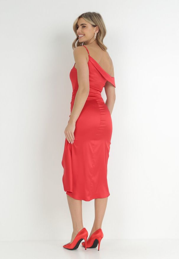 Wyprzedaż - sukienki damskie asymetryczne Born2be satynowe, kolekcja zima 2025