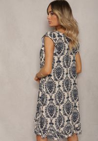 Renee - Niebiesko-Granatowa Wiskozowa Sukienka z Guzikami w Kwiecisty Wzór z Trójkątnym Dekoltem Neliafa. Okazja: na co dzień. Kolor: niebieski. Materiał: wiskoza. Długość rękawa: krótki rękaw. Wzór: aplikacja. Sezon: lato. Styl: boho, klasyczny, casual