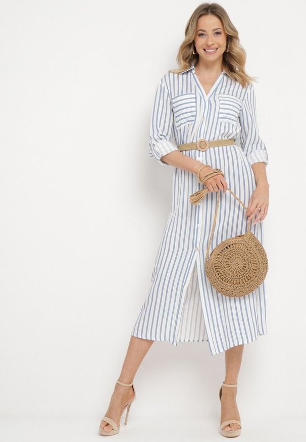 Born2be - Biała Sukienka Ipharei. Kolor: biały. Materiał: tkanina. Wzór: ażurowy, aplikacja. Styl: wizytowy. Długość: midi