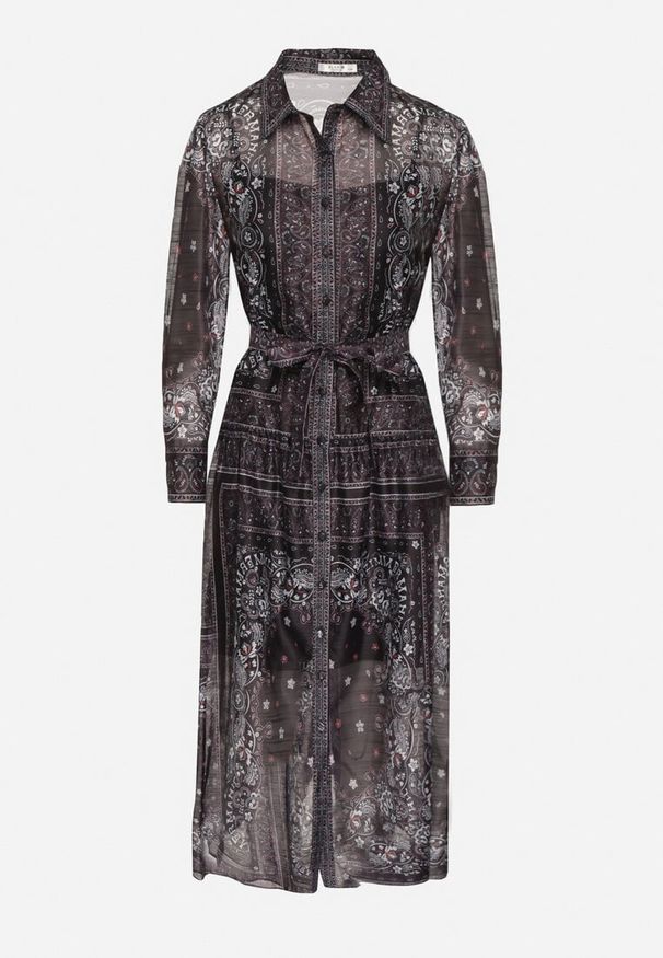 Renee - Czarno-Biała Bawełniana Sukienka Koszulowa w Kropki Wexnella. Kolor: czarny. Materiał: bawełna. Wzór: kropki. Typ sukienki: koszulowe. Długość: midi
