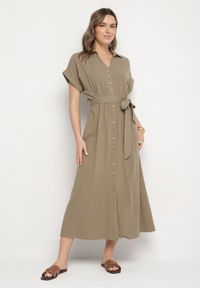 Born2be - Czarno-Biała Sukienka Długa w Paski o Koszulowym Kroju z Paskiem w Talii Agrala. Kolor: czarny. Materiał: zamsz, jeans. Wzór: paski. Typ sukienki: koszulowe. Styl: elegancki. Długość: maxi