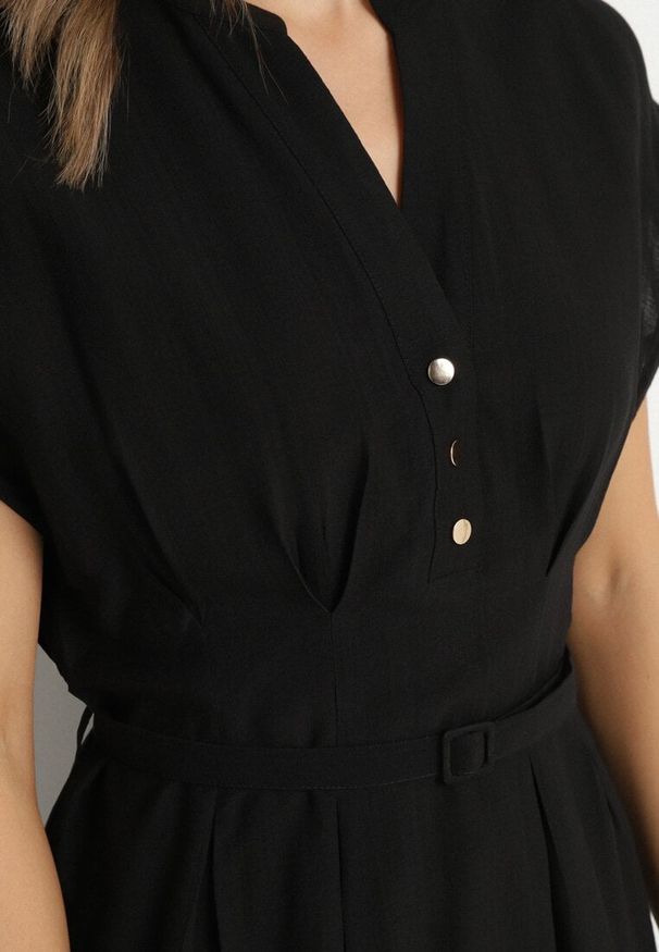 Born2be - Fuksjowa Sukienka Maxi w Kwiaty z Guzikami i Materiałowym Paskiem Kinzey. Okazja: na co dzień, na imprezę. Typ kołnierza: dekolt w serek. Kolor: różowy. Wzór: kwiaty. Typ sukienki: rozkloszowane. Materiał: materiał. Sezon: lato. Styl: casual, elegancki. Długość: maxi