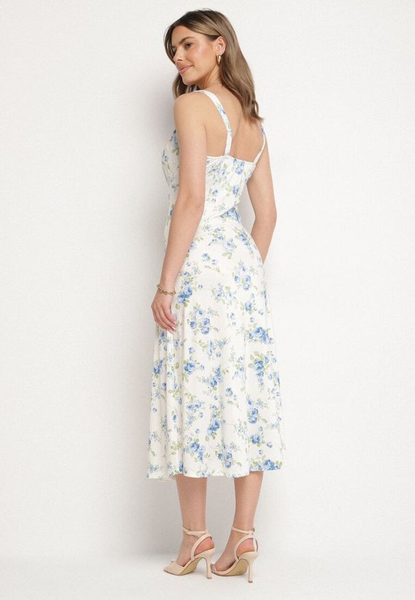 Born2be - Biała Sukienka Aquineva. Kolor: biały. Wzór: kwiaty. Długość: midi