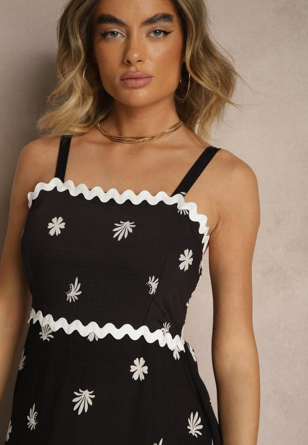 Born2be - Czarna Sukienka z Bawełną Wiskozą na Ramiączkach z Lamówką Ilanise. Okazja: na co dzień, na spacer. Kolor: czarny. Materiał: bawełna, wiskoza. Długość rękawa: na ramiączkach. Wzór: aplikacja. Sezon: lato. Typ sukienki: proste. Styl: casual, elegancki