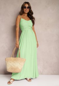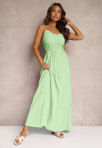 Renee - Zielona Sukienka z Wiskozy Maxi z Gumką w Pasie Weha. Kolor: zielony. Materiał: wiskoza. Sezon: lato. Długość: maxi