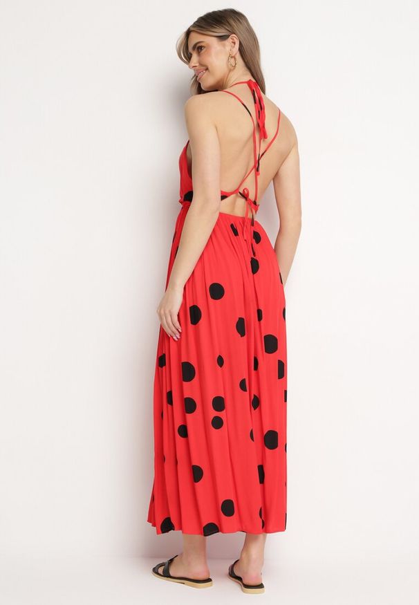 Born2be - Czerwona Rozkloszowana Sukienka Maxi z Wiązaniem na Szyi Cathenia. Kolor: czerwony. Długość: maxi