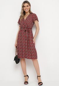 Born2be - Czerwona Rozkloszowana Sukienka Maxi z Wiązaniem na Szyi Cathenia. Kolor: czerwony. Długość: maxi