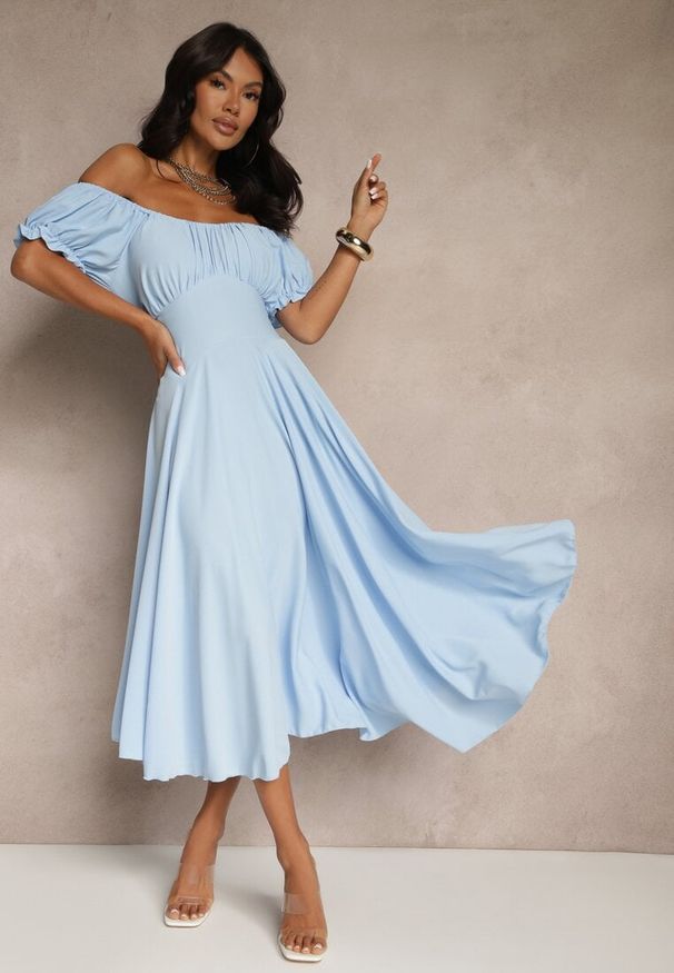 Renee - Jasnoniebieska Rozkloszowana Sukienka Bandeau Mavoreine. Okazja: na co dzień, na spacer, na imprezę. Kolor: niebieski. Sezon: lato. Typ sukienki: proste. Styl: casual, elegancki