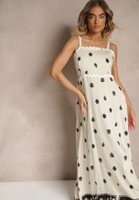 Renee - Beżowa Sukienka z Dodatkiem Bawełny na Ramiączkach z Regulacją oraz Gumką z Tyłu Tinanoras. Okazja: na co dzień. Typ kołnierza: dekolt kwadratowy. Kolor: beżowy. Materiał: bawełna. Długość rękawa: na ramiączkach. Sezon: lato. Typ sukienki: proste. Styl: casual