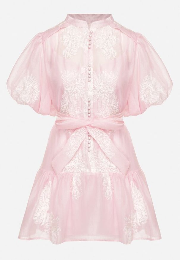 Renee - Jasnozielona Sukienka z Bawełny Wykończona Ażurowym Rękawem Detmolfa. Okazja: na co dzień, na imprezę. Kolor: zielony. Materiał: bawełna. Długość rękawa: krótki rękaw. Wzór: ażurowy. Sezon: lato. Typ sukienki: proste. Styl: casual, elegancki