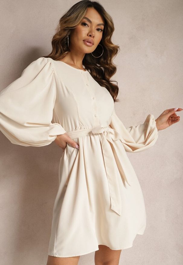 Renee - Beżowa Sukienka Kharon. Kolor: beżowy. Materiał: materiał, tkanina. Długość: mini
