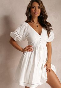 Renee - Biała Rozkloszowana Sukienka Mini z Wiązaniem w Talii Evyna. Kolor: biały. Długość: mini