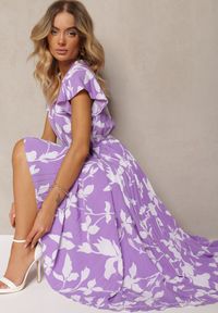 Renee - Niebieska Koktajlowa Sukienka Taliowana z Wiskozą Folarose. Okazja: na imprezę. Kolor: niebieski. Materiał: wiskoza. Styl: wizytowy