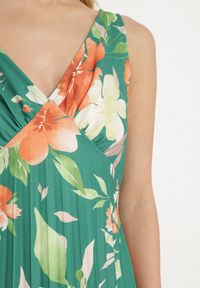 Born2be - Ciemnozielona Sukienka Rozkloszowana i Luźna Zeho. Okazja: na co dzień, na imprezę. Typ kołnierza: dekolt w kształcie V. Kolor: zielony. Długość rękawa: długi rękaw. Wzór: aplikacja. Styl: casual
