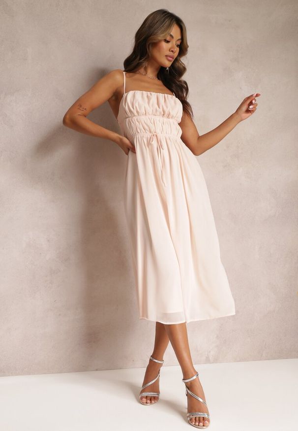 Renee - Różowa Sukienka Bawełniana Rozkloszowana Długa na Cienkich Ramiączkach z Regulacją Shalletia. Okazja: na co dzień. Kolor: różowy. Materiał: bawełna. Długość rękawa: na ramiączkach. Sezon: lato. Typ sukienki: rozkloszowane. Styl: casual. Długość: maxi