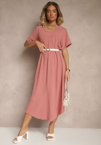 Renee - Różowa Sukienka Bawełniana Rozkloszowana Długa na Cienkich Ramiączkach z Regulacją Shalletia. Okazja: na co dzień. Kolor: różowy. Materiał: bawełna. Długość rękawa: na ramiączkach. Sezon: lato. Typ sukienki: rozkloszowane. Styl: casual. Długość: maxi