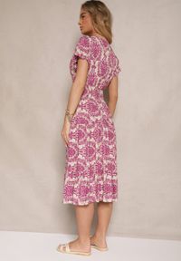 Renee - Różowa Sukienka z Bawełny o Rozkloszowanym Kroju w Etniczny Print Taliraya. Okazja: na co dzień, na spacer. Typ kołnierza: dekolt w serek. Kolor: różowy. Wzór: nadruk. Typ sukienki: rozkloszowane. Materiał: bawełna. Długość rękawa: na ramiączkach. Sezon: lato. Styl: casual