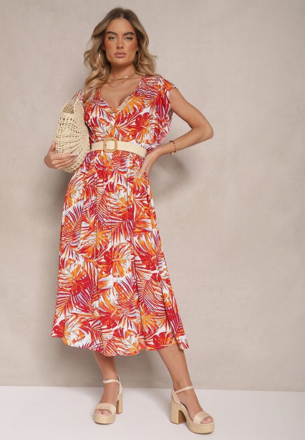 Renee - Różowa Sukienka Rozkloszowana z Wiskozą Bawełną i Rozcięciem na Nogę Saravisse. Okazja: na co dzień. Kolor: różowy. Materiał: bawełna, wiskoza. Typ sukienki: rozkloszowane, proste. Styl: klasyczny, casual