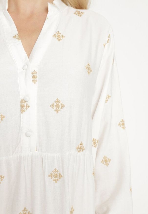 Renee - Czarno-Biała Wzorzysta Sukienka z Wiskozą o Koszulowym Kroju z Paskiem Ninnoria. Okazja: na co dzień. Kolor: czarny. Materiał: wiskoza. Długość rękawa: długi rękaw. Wzór: kwiaty. Typ sukienki: koszulowe. Styl: casual, elegancki