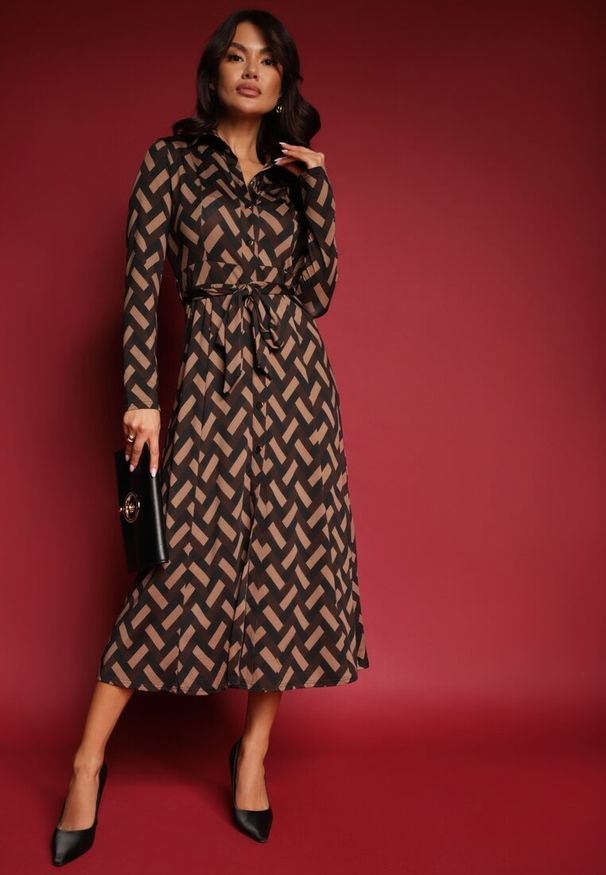 Born2be - Czarna Rozkloszowana Sukienka z Koszulową Górą i Materiałowym Paskiem w Talii Giefia. Okazja: na co dzień. Kolor: czarny. Materiał: materiał. Długość rękawa: krótki rękaw. Sezon: lato. Typ sukienki: koszulowe. Styl: klasyczny, casual, elegancki